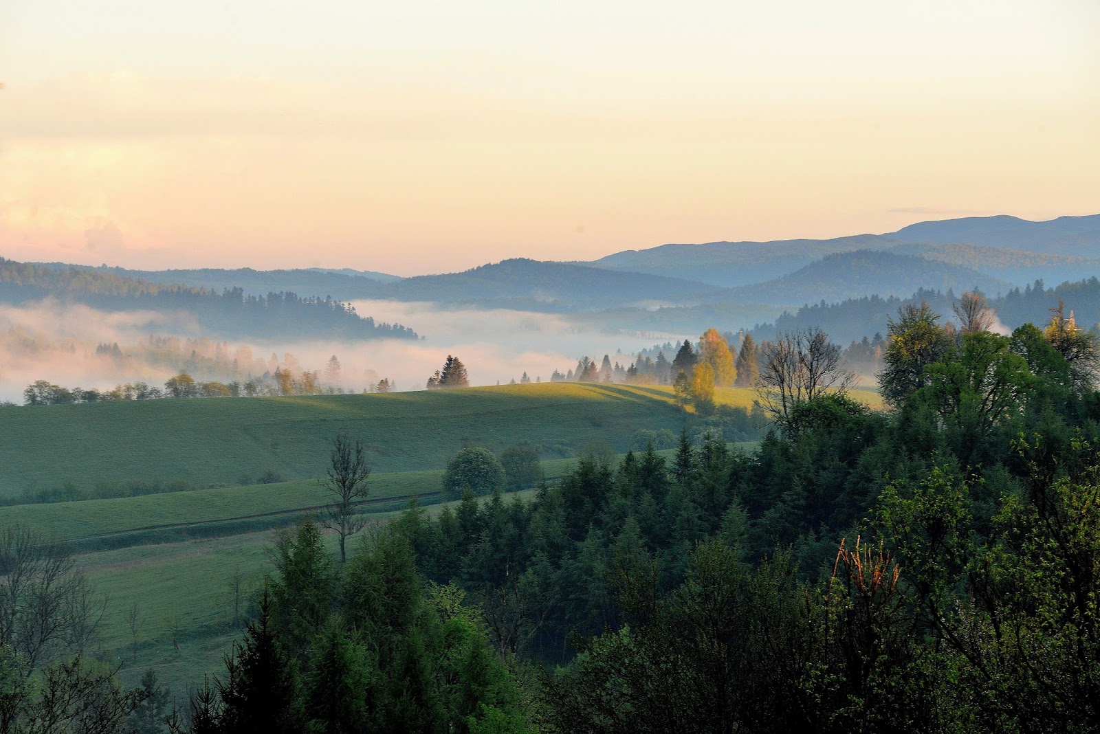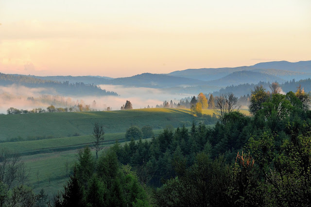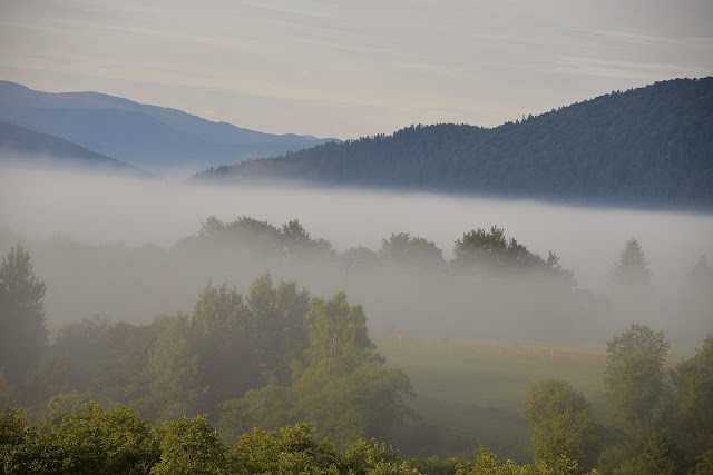 Od lat noszę okulary bo już poradziłam sobie z własną próżnością. Już wiem, że jeśli ktoś ma mnie polubić, to nawet jakbym nosiła denka od butelek na oczach - polubi. Ale tęsknota do świata za mgłą - pozostała we mnie. Dlatego stałam się łowczynią mgieł, dlatego z przyjemnością je fotografuję. Mieszkając w Bieszczadach mam wiele ku temu okazji.